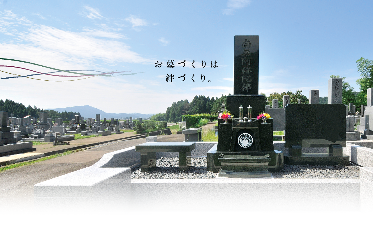 お墓はただ建てれば良いものではなく、お墓を立てる意味を知り、祖先を敬うことが大切です。増谷石材工業では、石に関する技術・知識を活かし、お客様と一緒に、孫、曾孫の代まで受け継がれるお墓づくりをしています。デザイン墓石をはじめとした各種墓石の販売、設計から施工、お墓の修理、さらには墓地紹介や墓じまいまで、お墓・供養に関するあらゆるお手伝いを行っています。